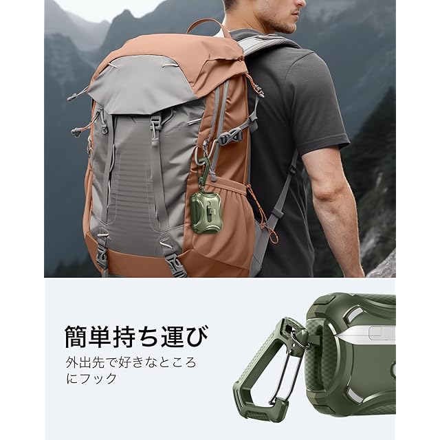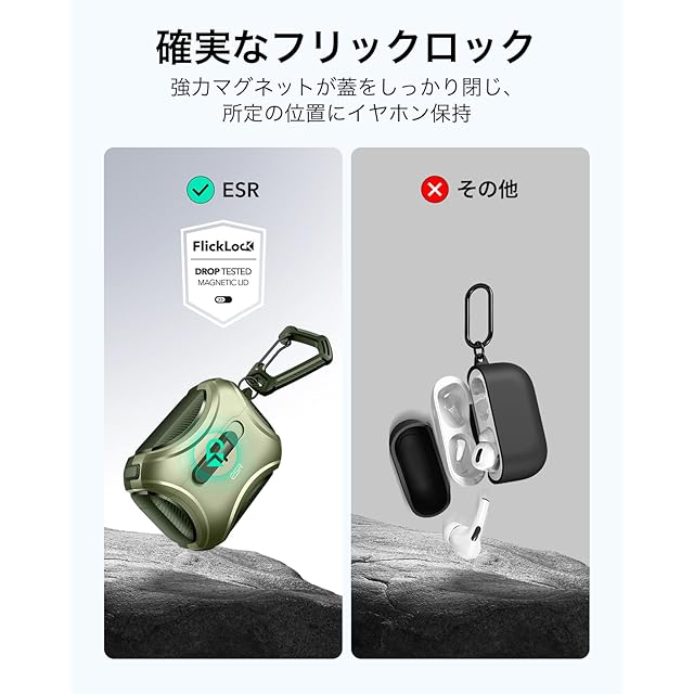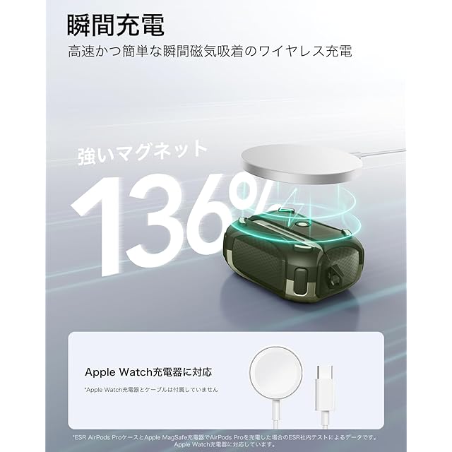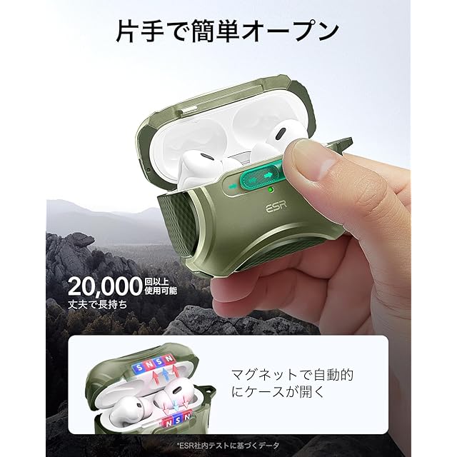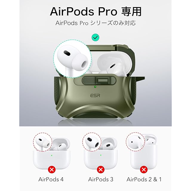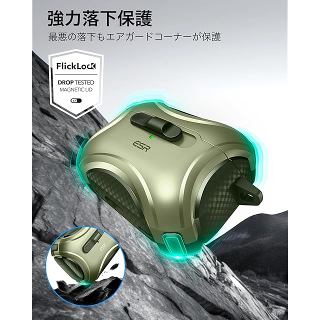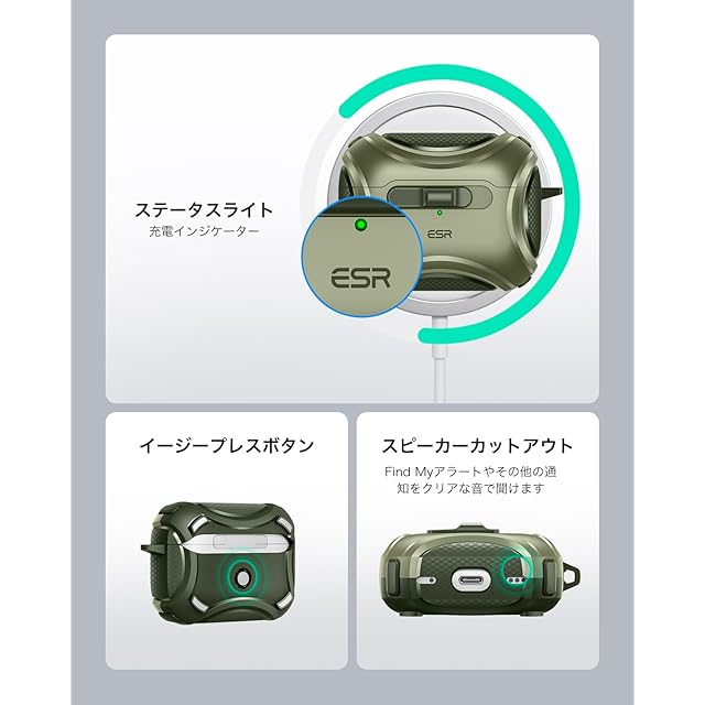 商品名:ESR AirPods Proケース(2023/2022/2019、第2/1世代)専用、AirPods Pro第2世代(USB-C/Lightningケーブル)対応、MagSafe、落下防止ロック、イージーオープン、Cyberシリーズ、暗グリーン