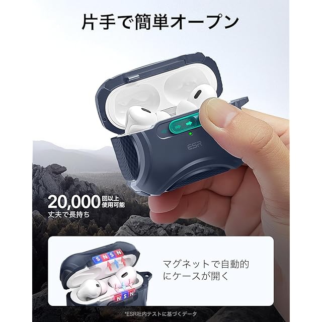 商品名:ESR AirPods Pro2 ケース MagSafe対応 AirPods Pro 第2世代/第1世代 (2023/2022/2019)共通 HaloLock付き(USB-C/Lightningケーブル対応)、マグネット蓋ロック、強力な落下防止、Pulseシリーズ ブルー