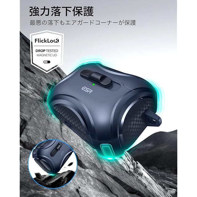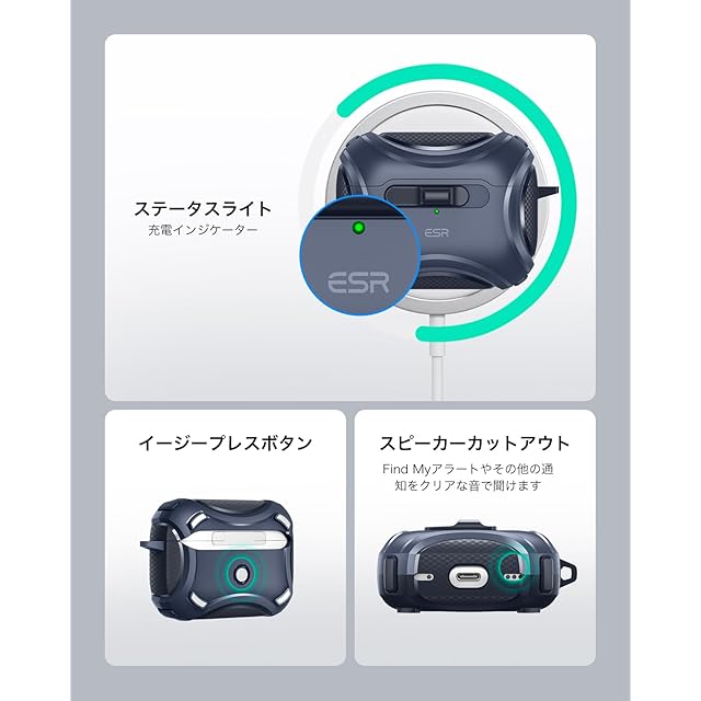 ESR AirPods Pro2 ケース MagSafe対応 AirPods Pro 第2世代/第1世代 (2023/2022/2019)共通 HaloLock付き(USB-C/Lightningケーブル対応)、マグネット蓋ロック、強力な落下防止、Pulseシリーズ ブルー | TREND DESIGN 家電専門店