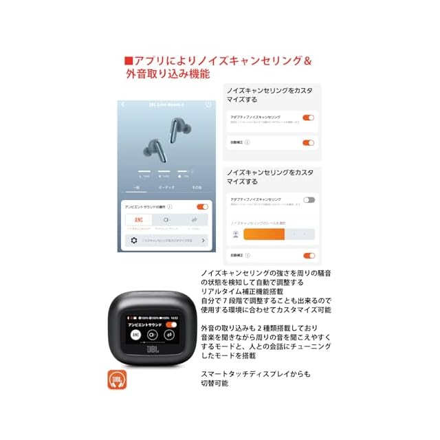 商品名:JBL LIVE BEAM 3 ワイヤレスイヤホン スマート充電ケース/LDAC対応ハイレゾ/マルチポイント/ハイブリッド ノイズキャンセリング/IP55防水/ワイヤレス充電対応/ブラック/JBLLIVEBEAM3BLK