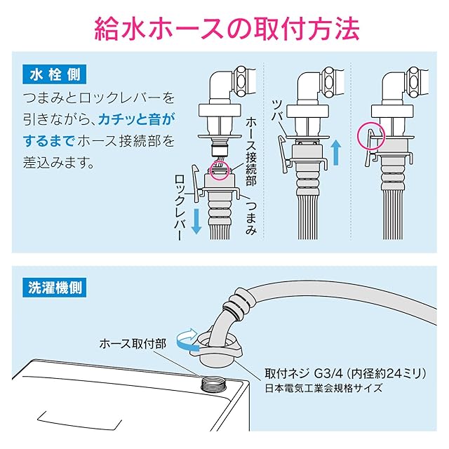 ガオナ ホリダー・シモン 自動洗濯機用 給水ホース 0.8m ワンタッチ給水ジョイントセット (水漏れ防止 安心ストッパーつき 取付ネジ2サイズ兼用 取付簡単) GA-LC008 ホワイト | TREND DESIGN 家電専門店