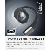 【ながら聴きイヤホン、もっと「自 由」に】オープンイヤー型で周囲の音も自然に耳に入ってくるから、好きな曲を聞いている時でも、周りの声を聞き逃しません。通話中に宅配便が来てもすぐ気付くなど、テレワークとの相性は良好です。散歩中や家事などさまざまな場面で、コンテンツと環境音が自然に重なり、オー プンイヤーならではの開放感を体感いただけます。
