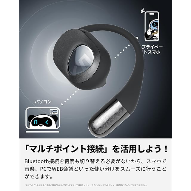 商品名:SOUNDPEATS(サウンドピーツ) GoFree2 ワイヤレスイヤホン オープンイヤー LDAC対応 ハイレゾ 耳掛け式 イヤホン 耳を塞がない 究極のフィット感 マルチポイント接続 最大35時間再生 Bluetooth5.3 アプリ対応 開放型イヤホン 究極のフィット感 【VGP 2024 金賞】(パールブラック)