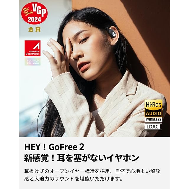 【Hi-Res認証取得、オープンイヤーの音質がここまで進化!】GoFree2は日本オーディオ協会の「Hi-Res Wireless」ロゴを取得、オー プンイヤー型イヤホンの常識を打破するサウンドクオリティを実現しました。深く響く重低音から優しく包み込む中高域まで、全体の調和がとれたサウンドを、耳を塞がないリラックスした状態でお楽しみいただけます。