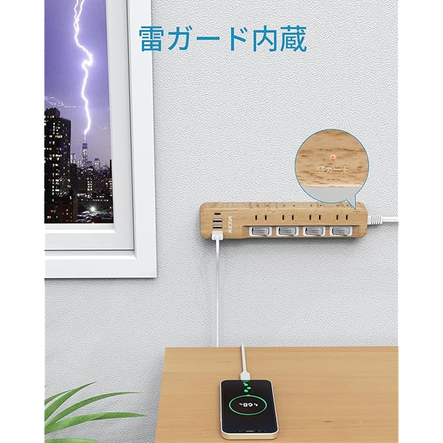 【安心】耐熱性に優れた材質が付いており、雷ガードを内蔵しており、雷サージによる家電への被害防止に役立ちます。