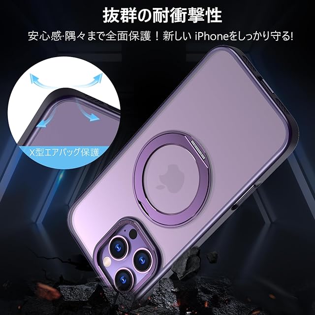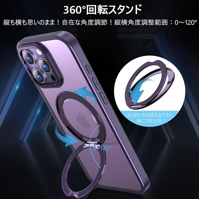 商品名:KWATUNG ケース iphone 16 pro 用 ケース magsafe対応 ワイヤレス充電 iphone16pro 用ケース 耐衝撃 いphone16pro 用ケース 360°回転スタンド 縦横両対応 アイフォン16プロ用ケース マグネット搭載 アイフォン16pro 用ケース 防指紋 米軍MIL規格 iphone16プロ 用ケース 6.3インチ 半透明 マット感 深い紫