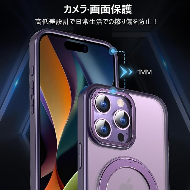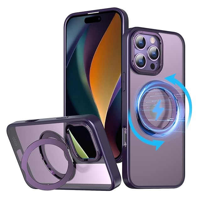 KWATUNG ケース iphone 16 pro 用 ケース magsafe対応 ワイヤレス充電 iphone16pro 用ケース 耐衝撃 いphone16pro 用ケース 360°回転スタンド 縦横両対応 アイフォン16プロ用ケース マグネット搭載 アイフォン16pro 用ケース 防指紋 米軍MIL規格 iphone16プロ 用ケース 6.3インチ 半透明 マット感 深い紫 | TREND DESIGN 家電専門店