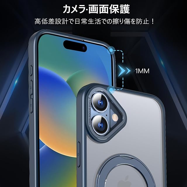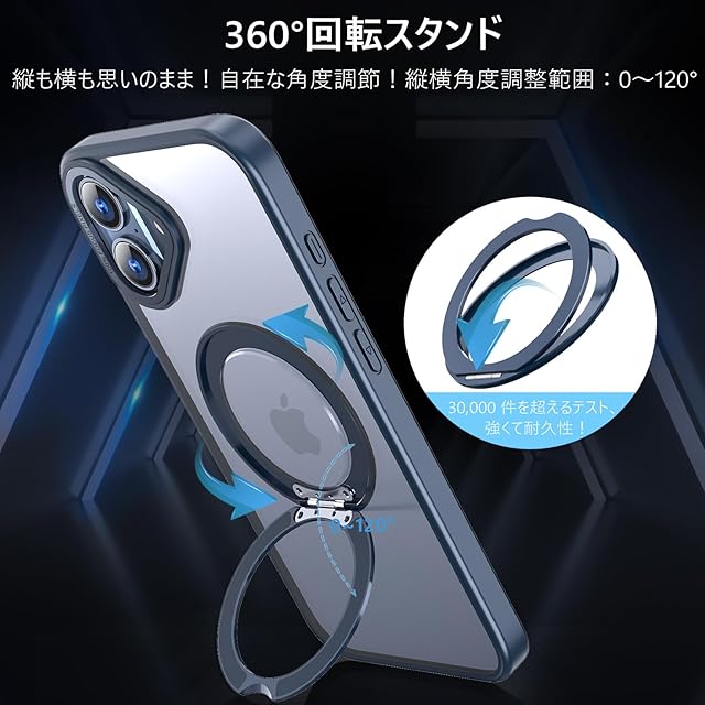 KWATUNG ケース iphone16用ケース magsafe対応 ワイヤレス充電 アイホン16用ケース 耐衝撃 iphone 16 用 ケース 360°回転スタンド 縦横両対応 スマホケース iphone 16 用 マグセーフ リング マグネット搭載 アイフォン16 用ケース 防指紋 米軍MIL規格 iphone16 用カバー 6.1インチ 半透明 マット感 ブルー