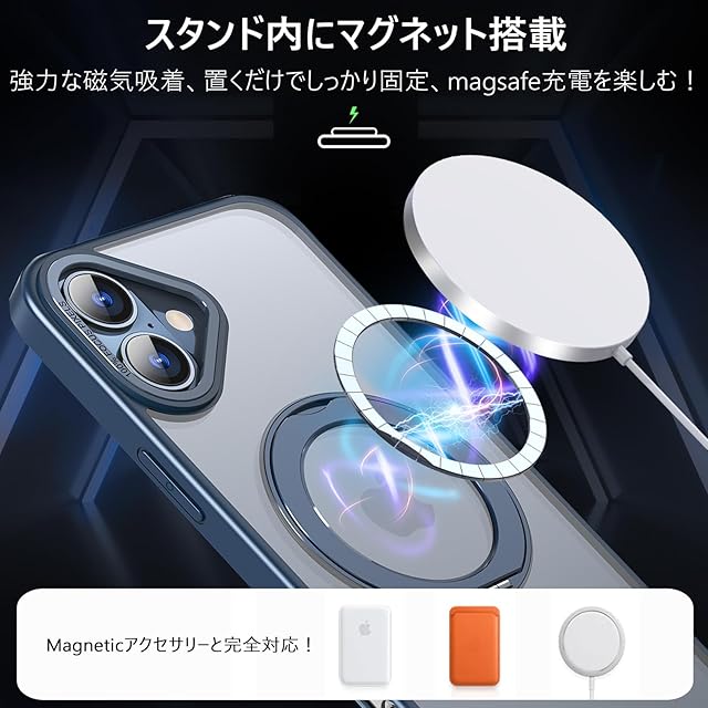 【Magsafe対応·多機能】iPhone 16 用 ケース(両眼カメラ、6.1インチ)。ワイヤレス充電やモバイルバッテリーなど全てのMagSafe用アクセサリーにもばっちり対応しています。こちらのiphone16用ケースを使用すれば、充電ケーブルを抜き差しする必要がなくなり、利便性を体感していただけます。