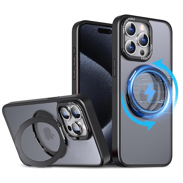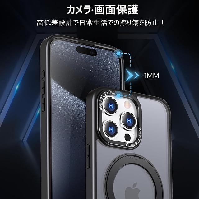 KWATUNG 互換品 ケース iphone 15 pro 用 ケース magsafe対応 ワイヤレス充電 iphone15pro 用ケース 耐衝撃 いphone15pro 用ケース 360°回転スタンド 縦横両対応 アイフォン15プロ用ケース マグネット搭載 アイフォン15pro 用ケース 防指紋 米軍MIL規格 iphone15プロ 用ケース 6.1インチ 半透明 マット感 ブラック | TREND DESIGN 家電専門店