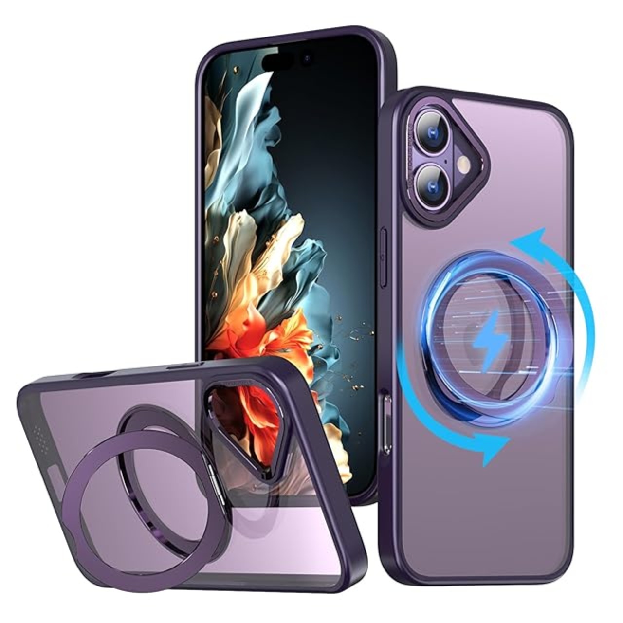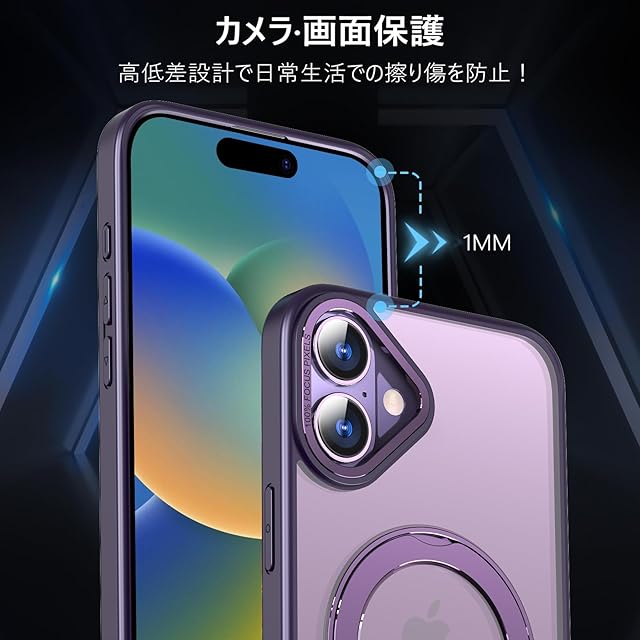 KWATUNG ケース iphone 16 plus 用 ケース magsafe対応 ワイヤレス充電 iphone16plus 用ケース 耐衝撃 落下防止 いphone16plus 用ケース 360°回転スタンド 縦横両対応 アイホン16プラス用ケース マグネット搭載 アイホン16plus用ケース 防指紋 米軍MIL規格 6.7インチ 半透明 マット感 深い紫 | TREND DESIGN 家電専門店