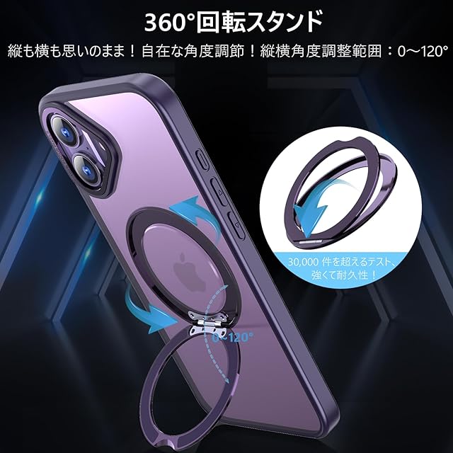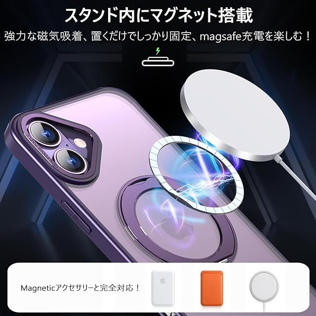 商品名:KWATUNG ケース iphone 16 plus 用 ケース magsafe対応 ワイヤレス充電 iphone16plus 用ケース 耐衝撃 落下防止 いphone16plus 用ケース 360°回転スタンド 縦横両対応 アイホン16プラス用ケース マグネット搭載 アイホン16plus用ケース 防指紋 米軍MIL規格 6.7インチ 半透明 マット感 深い紫
