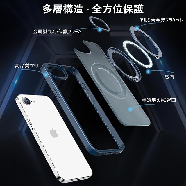 KWATUNG iPhone 16e 用 ケース magsafe対応 ワイヤレス充電 アイホン16e用 ケース 耐衝撃 いphone16e用ケース 360°回転スタンド 縦横両対応 アイフォン16e用ケース マグネット搭載 iPhone SE4 用ケース 防指紋 米軍MIL規格 スマホケース iPhone16e 用ケース 6.1インチ 半透明 マット感 ブルー | TREND DESIGN 家電専門店
