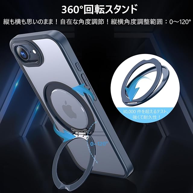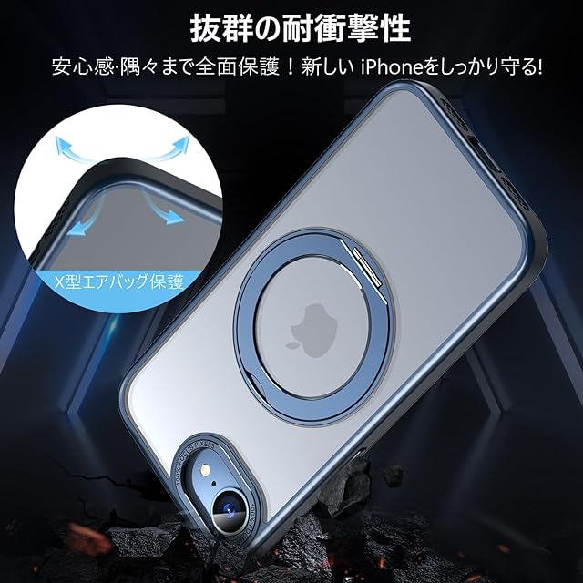 商品名:KWATUNG iPhone 16e 用 ケース magsafe対応 ワイヤレス充電 アイホン16e用 ケース 耐衝撃 いphone16e用ケース 360°回転スタンド 縦横両対応 アイフォン16e用ケース マグネット搭載 iPhone SE4 用ケース 防指紋 米軍MIL規格 スマホケース iPhone16e 用ケース 6.1インチ 半透明 マット感 ブルー
