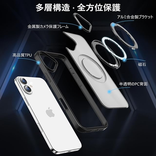 【Magsafe対応·多機能】iPhone 16 用 ケース(両眼カメラ、6.1インチ)。ワイヤレス充電やモバイルバッテリーなど全てのMagSafe用アクセサリーにもばっちり対応しています。こちらのiphone16用ケースを使用すれば、充電ケーブルを抜き差しする必要がなくなり、利便性を体感していただけます。
