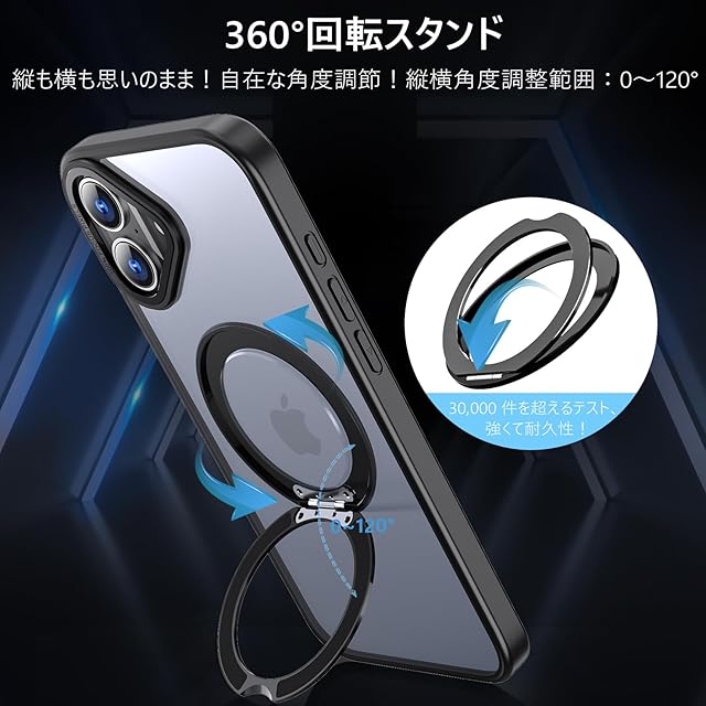 KWATUNG ケース iphone16用ケース magsafe対応 ワイヤレス充電 アイホン16用ケース 耐衝撃 iphone 16 用 ケース 360°回転スタンド 縦横両対応 スマホケース iphone 16 用 マグセーフ リング マグネット搭載 アイフォン16 用ケース 防指紋 米軍MIL規格 iphone16 用カバー 6.1インチ 半透明 マット感 ブラック | TREND DESIGN 家電専門店