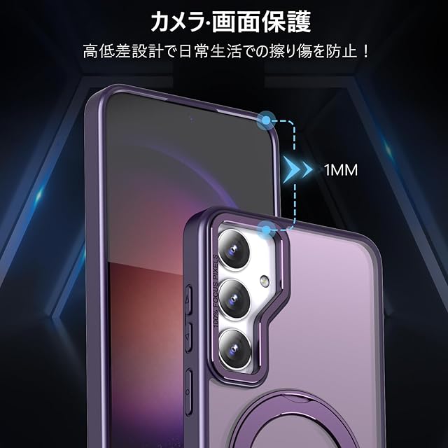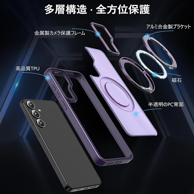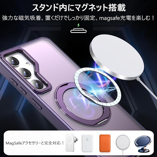 商品名:KWATUNG Galaxy S25 用 ケース Galaxy S24 用 ケース magsafe対応 ワイヤレス充電 耐衝撃 ギャラクシー s25 ケース 360°回転スタンド 縦横両対応 ギャラクシー s24 ケース マグネット搭載 SC-51E SCG25 用ケース 防指紋 米軍MIL規格 スマホケース S24 S25 用 6.2インチ 半透明 マット感 深い紫