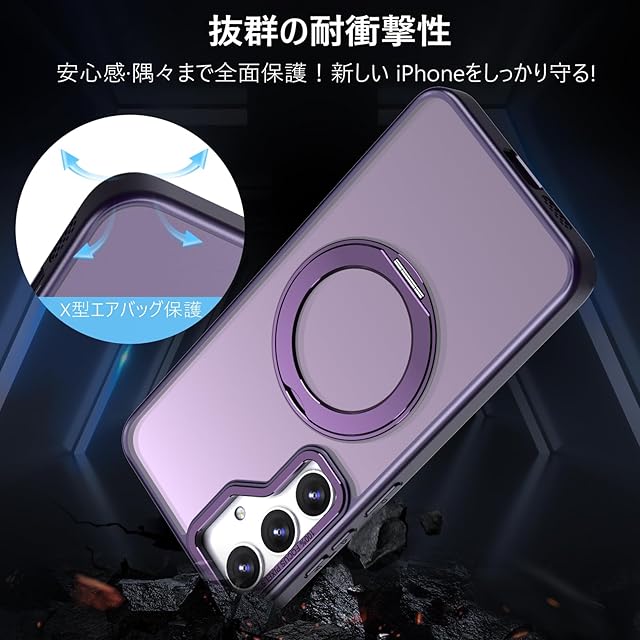【360度回転スタンド】KWATUNGのスマートフォンケースは360度回転するスタンドが備わっているため、スマートフォンのコンテンツを見たり、ビデオ通話をしたりする際、一つの角度に限定されることがなくなります。縦向きから横向きまで簡単に切り替えることができ、自分に合った視聴や撮影の角度を自在に選ぶことができます。【MagSafe対応・磁力アップグレード】KWATUNGのスマートフォンケース用多機能スタンドは強力な磁石が搭載されており、エネルギーロスなく高速ワイヤレス充電を行うことができます。(➡ご注意:Magsafe機能付きワイヤレス充電器のみに対応します) こちらのスマートフォンケースを使用すれば、充電ケーブルを抜き差しする必要がなくなり、利便性を体感していただけます。【手触りが良い】こちらのスマートフォンケースは高品質の素材を採用しており、優れた手触り感をご提供することができます。手触りの良いデザインは、快適なグリップを提供するだけでなく、スマートフォンの耐滑性を高め、スマートフォンが手から滑り落ちるリスクを効果的に軽減することができます。