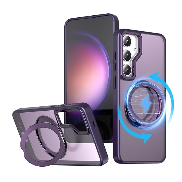 KWATUNG Galaxy S25 用 ケース Galaxy S24 用 ケース magsafe対応 ワイヤレス充電 耐衝撃 ギャラクシー s25 ケース 360°回転スタンド 縦横両対応 ギャラクシー s24 ケース マグネット搭載 SC-51E SCG25 用ケース 防指紋 米軍MIL規格 スマホケース S24 S25 用 6.2インチ 半透明 マット感 深い紫 | TREND DESIGN 家電専門店