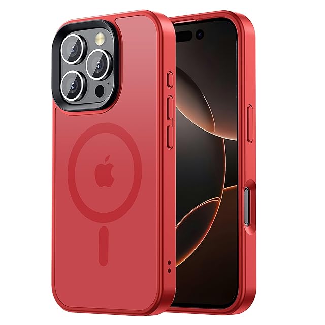 【米軍規格・MagSafe対応】Gtsoho iPhone 16 Pro ケース 用 ケース 透明 マグネット搭載 ワイヤレス充電 耐衝撃 耐久性 全面保護 黄ばみなし ストラップホール付き イフォン 16 Pro 用 カバー マグセーフ対応 レッド