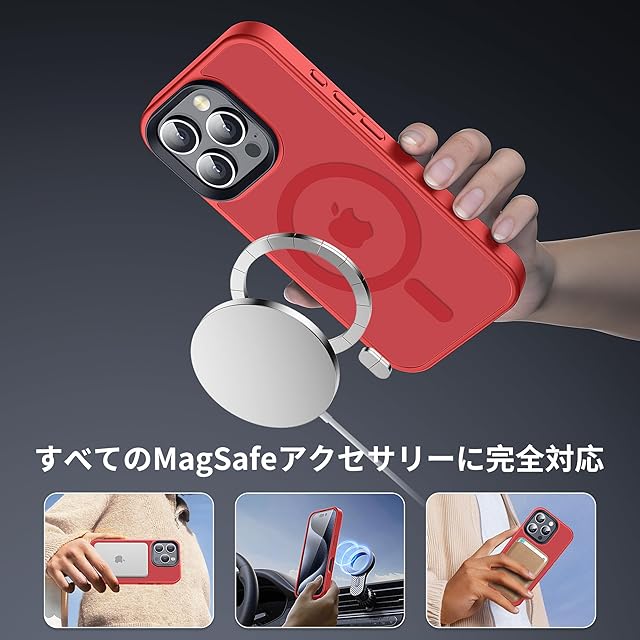 商品名:【米軍規格・MagSafe対応】Gtsoho iPhone 16 Pro ケース 用 ケース 透明 マグネット搭載 ワイヤレス充電 耐衝撃 耐久性 全面保護 黄ばみなし ストラップホール付き イフォン 16 Pro 用 カバー マグセーフ対応 レッド