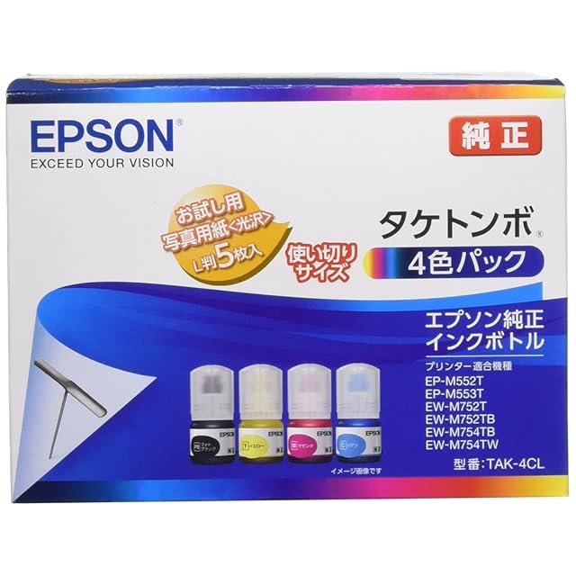 商品名:エプソン 純正 インクボトル タケトンボ TAK-4CL 4色パック