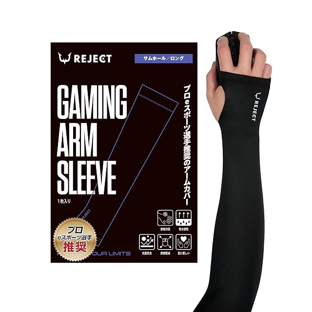商品名:REJECT アームカバー ゲーミング サムホール ロング 1枚入 マウスパッド ガラス ゲーム ゲーミングアームカバー fps tps VALORANT Apex フォートナイト GAMING ARM SLEEVE - THUMB HOLE LONG