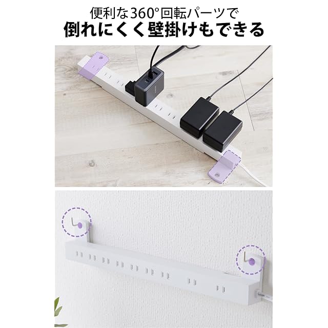 360度回転可能な脚パーツは展開することで、重いACアダプターなどを接続してもタップが横転しにくくなります。