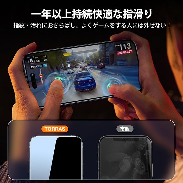 「指紋防止・指滑り超快適!」TORRAS iPhone 15 Pro Max 専用 ガラスフィルム 高精度ガイド 航空宇宙材料 米軍MIL規格 全面保護 強化極細黒縁 9H越え 2枚セット アイフォン15プロマックス用フィルム GlassGo Series | TREND DESIGN 家電専門店