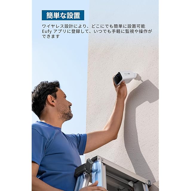 簡単な設置:ワイヤレス設計により、どこにでも簡単に設置可能。また、Eufy アプリに登録して、いつでも手軽に監視や操作ができます。