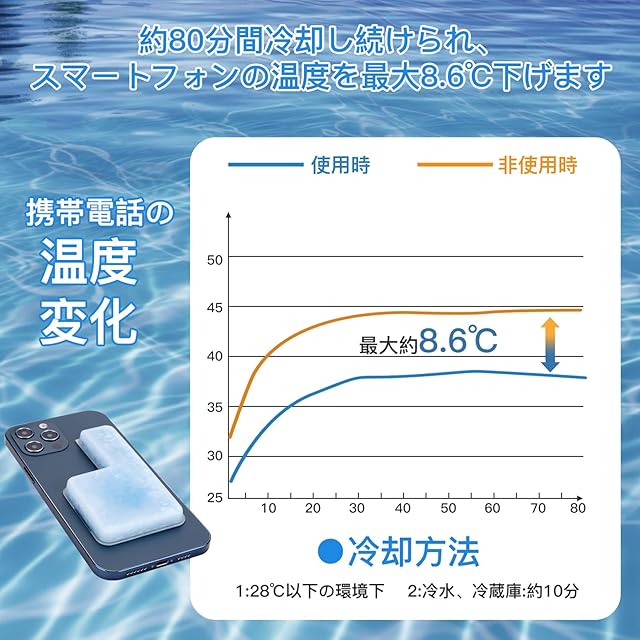 商品名:スマホ専用 冷却パッド 過熱防止 PCM素材 28℃以下で自然凍結 熱吸収最大8.6℃ 持続時間80分 結露しない 繰り返し使用可 コンパクト iPhone/Android/iPad/Switch 適用 (通常 2個入り)