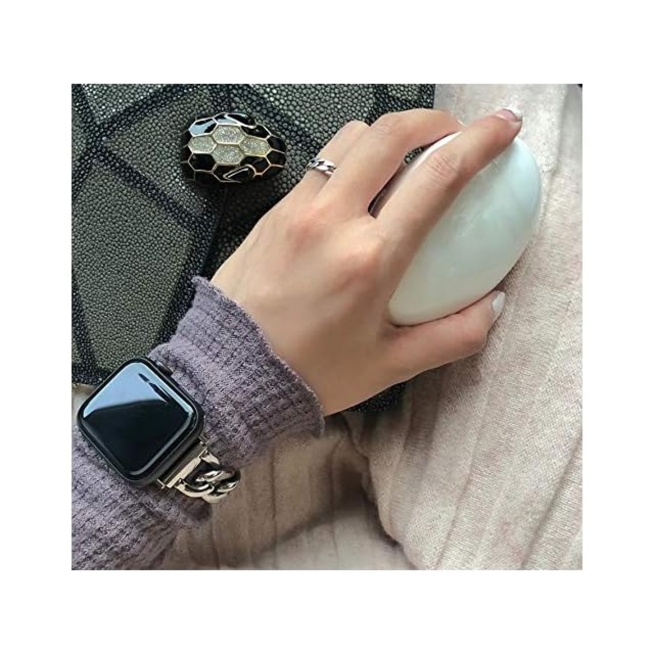 【全機種対応】対応機種:Apple Watch Series 10 , 9 , 8 , 7 , 6 , 5 , 4 , SE ,Ultra 2.1 /サイズ:40 . 41 . 42 . 44 . 45 . 46 . 49mm対応 / ご希望のサイズをお選びください。 / 付属品:輸送用ボックス、コマ調整説明書 ※アップルウォッチ本体は付属しません。※ゴールドカラー、ピンクゴールドカラーはチェーンが重なり合う部位は塗装が薄れシルバーに近い色味となりますが、不良品ではございません。装着時には露出しない部位となります。コマ調整の際は、コマサイドのパーツを真っ直ぐ引き出し回転させて下さい。