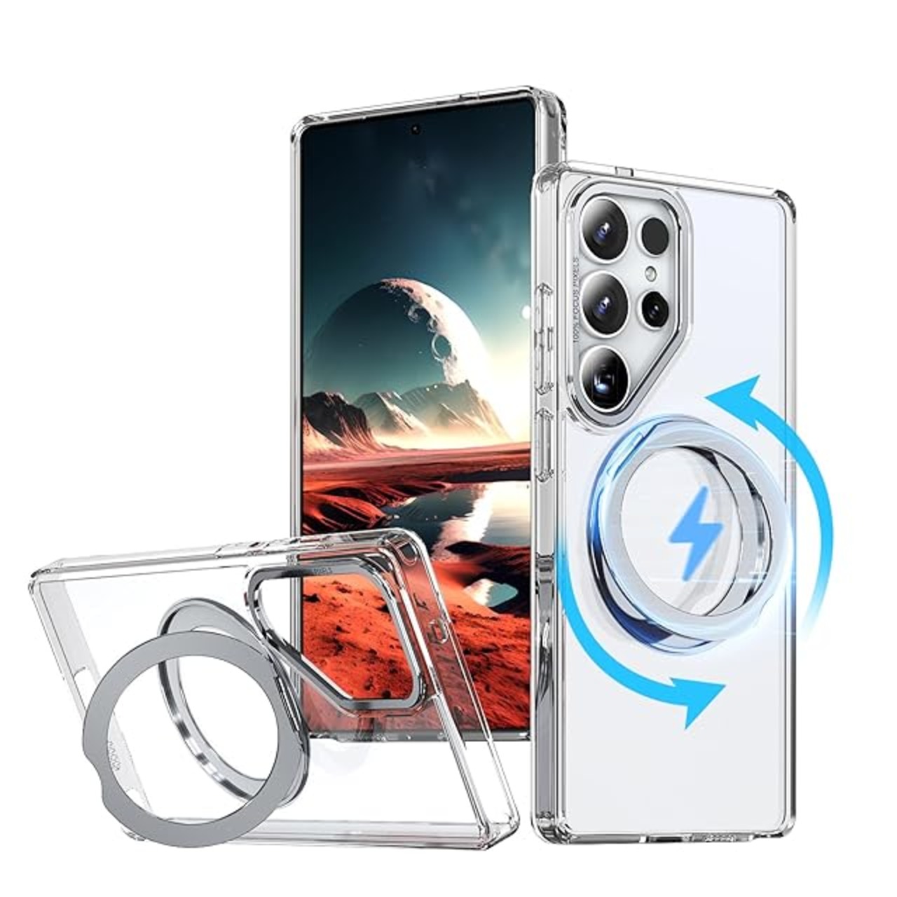 KWATUNG Galaxy S25 Ultra 用 ケース magsafe対応 ワイヤレス充電 耐衝撃 ギャラクシーS25 Ultra 用ケース 360°回転スタンド 縦横両対応 マグネット搭載 SC-52F SCG32 用ケース 防指紋 米軍MIL規格 ギャラクシー S25 ウルトラ 用スマホケース 透明 クリア | TREND DESIGN 家電専門店