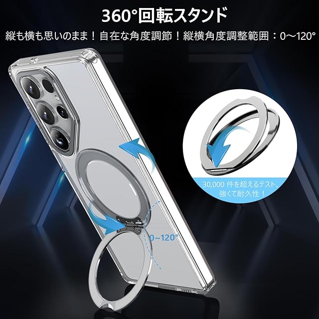 商品名:KWATUNG Galaxy S25 Ultra 用 ケース magsafe対応 ワイヤレス充電 耐衝撃 ギャラクシーS25 Ultra 用ケース 360°回転スタンド 縦横両対応 マグネット搭載 SC-52F SCG32 用ケース 防指紋 米軍MIL規格 ギャラクシー S25 ウルトラ 用スマホケース 透明 クリア