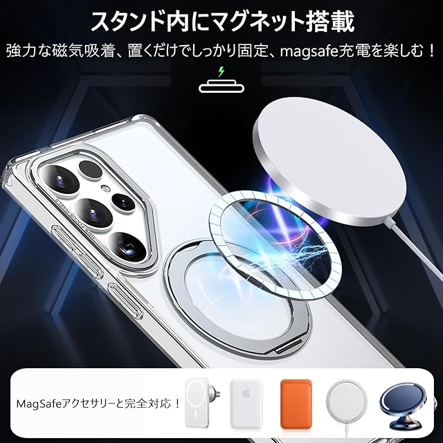【Magsafe対応·多機能】Galaxy S25 Ultra(SC-52F/SCG32)専用 。ワイヤレス充電やモバイルバッテリーなど全てのMagSafe用アクセサリーにもばっちり対応しています。こちらのGalaxy S25 Ultra用ケースを使用すれば、充電ケーブルを抜き差しする必要がなくなり、利便性を体感していただけます。【ご注意:この製品はすべての Magsafe デバイスと互換性がありますが、Qi ワイヤレス充電には適していないため、購入する前にこの点を考慮してください】