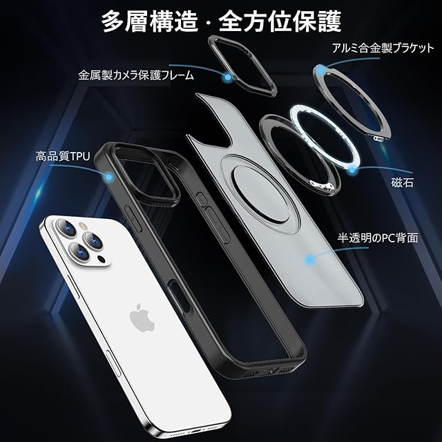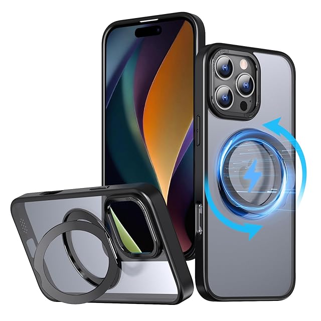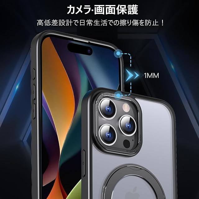 KWATUNG ケース iphone 16 pro max 用 ケース magsafe対応 ワイヤレス充電 アイホン16pro max 用ケース 落下防止 耐衝撃 いphone16pro max 用 ケース 360°回転スタンド 縦横両対応 iphone16プロマックス 用ケース マグネット搭載 防指紋 米軍MIL規格 6.9インチ 半透明 マット感 ブラック | TREND DESIGN 家電専門店