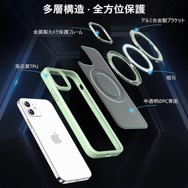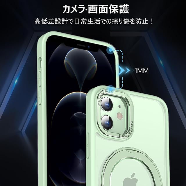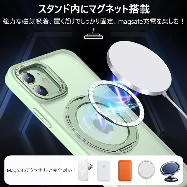 KWATUNG iPhone12 用 ケース iPhone 12 Pro 用 ケース magsafe対応 ワイヤレス充電 耐衝撃 いphone12 用ケース 360°回転スタンド 縦横両対応 アイフォン12用ケース マグネット搭載 アイフォン12pro 用ケース 防指紋 米軍MIL規格 スマホケース iphone12/iPhone12 Pro 用 6.1インチ 半透明 マット感 ライトグリーン | TREND DESIGN 家電専門店