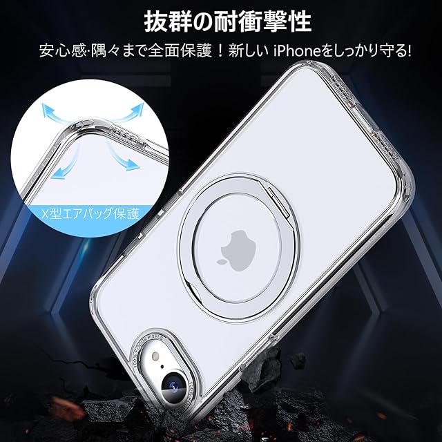 商品名:【透明な輝き】KWATUNG iPhone 16e 用 ケース magsafe対応 ワイヤレス充電 アイホン16e用 ケース 耐衝撃 いphone16e用ケース 360°回転スタンド 縦横両対応 アイフォン16e用ケース マグネット搭載 iPhone SE4 用ケース 防指紋 米軍MIL規格 スマホケース iPhone16e 用ケース 6.1インチ 透明 クリア
