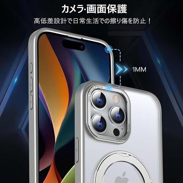 商品名:KWATUNG ケース iphone 16 pro 用 ケース magsafe対応 ワイヤレス充電 iphone16pro 用ケース 耐衝撃 いphone16pro 用ケース 360°回転スタンド 縦横両対応 アイフォン16プロ用ケース マグネット搭載 アイフォン16pro 用ケース 防指紋 米軍MIL規格 iphone16プロ 用ケース 6.3インチ 半透明 マット感 チタングレー