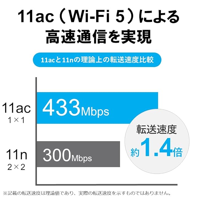【転送速度】11ac:433M、11a:54M、11n:150M、11g:54M、11b:11M