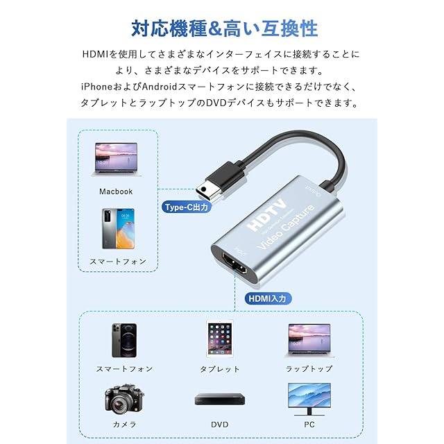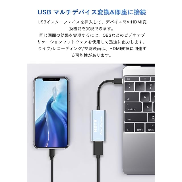商品名:【2023新登場】Newluck USB-C & HDMI 変換アダプタ キャプチャーボード HDMI キャプチャーボード HD画質録画 HD1080P/4Kパススルー機能 HDMI ビデオキャプチャー ゲーム録画/HDMIビデオ録画/ライブ配信用キャプチャー ボード 電源不要 小型軽量 低遅延 Switch/PC/PS用録画 Win7/8/10 Linux OBS対応 日本語取扱説明書付き
