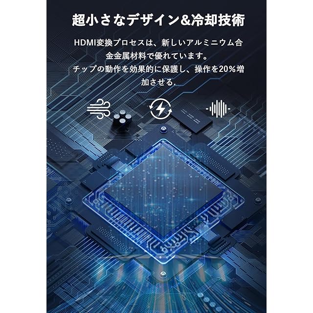 【プレミアムデザイン】小型の設計で、それに持ち運びが便利です。HDMI入力に対応した変換ケーブルを使用することで、さまざまな機器と接続できます。外装は軽量アルミ合金製で、放熱効果が20%アップ。 物理的な冷却により、チップの使用は効果的に保護されます。