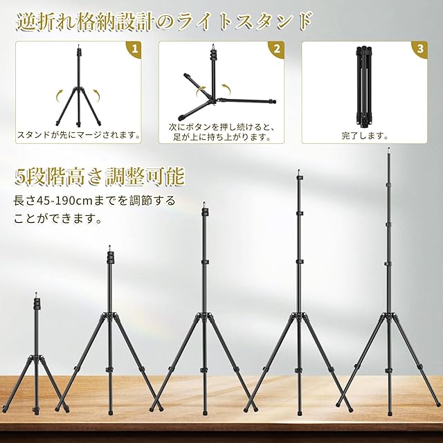 【逆折り畳み収納・軽量】逆折れ格納式デザインなので、普通のライトスタンドと異なり、折り畳後の長さがより短くて、室外で撮影する場合は更に手軽に持ち運べます。重量わずか0.8kgで、コンパクトな43cmに折りたたまれ、調節可能な照明スタンドは持ち運びが簡単です。