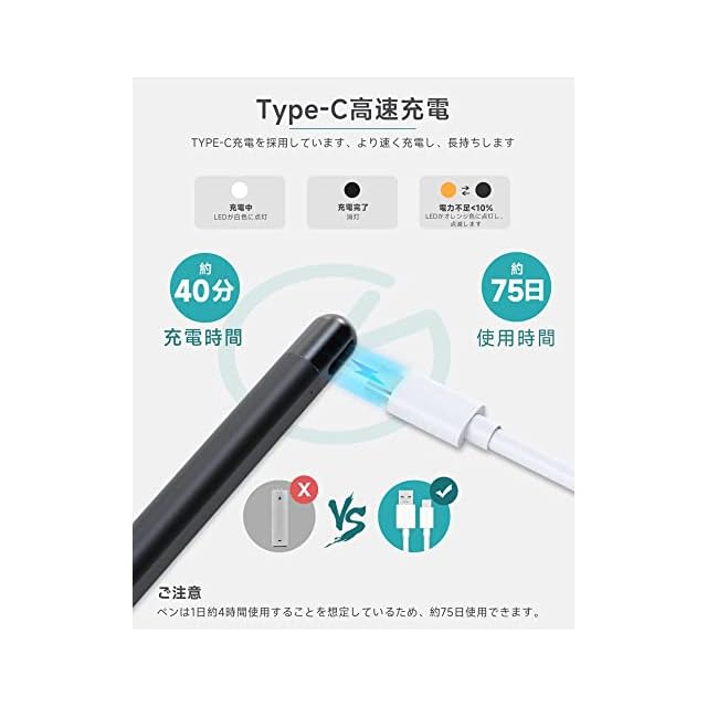 ・革新的なType C急速充電&長時間使用・Metapen Surface用タッチペン M1は 最先端のUSB C急速充電を採用しています、単6電池を使用する多くのブランドとは異なり。高速充電と長いバッテリー寿命を享受する、完全に充電して300時間以上継続して使用するには、40分しかかかりません! 充電1分=作業15時間。充電5分=作業80時間。初めて使用する前に10分間充電してください。この surface タッチペンは、メモを取ったり絵を描いたりすることが必要な学生、クリエイター、会社員の方に最適です。ご家族、恋人、友人、同級生、自分などに準備した最適な新年と成人の日のプレゼントです。