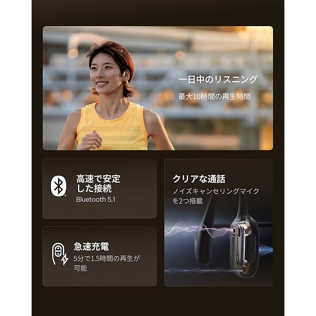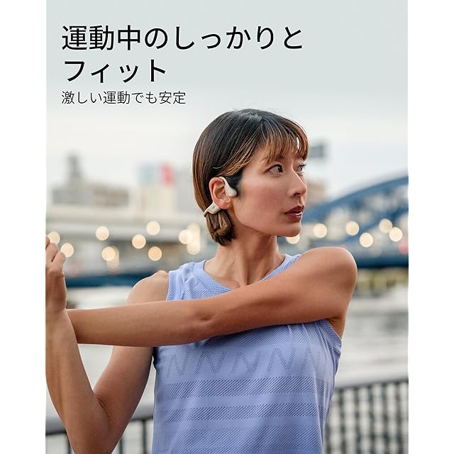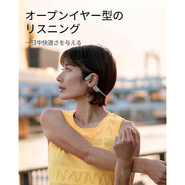 第9世代の骨伝導テクノロジー:耳を塞がず、長時間のワークアウトでも快適。使用中も周囲の車両や歩行者に気を配りながら、サイクリングやランニングを安全かつ安心して楽しめます。自由な動きと共に、しっかりとしたフィット感とオープンイヤーデザインが新しいトレーニング体験を提供します。