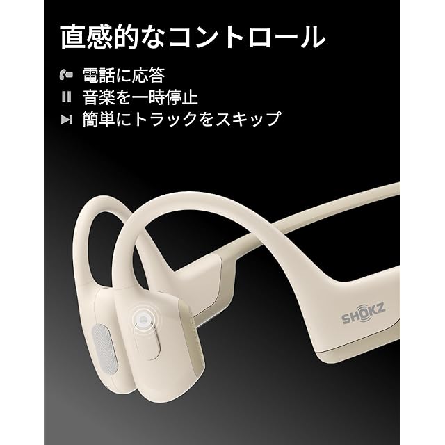 Shokz (ショックス) OpenRun Pro 骨伝導イヤホン ワイヤレス Bluetooth5.1 オープンイヤーヘッドホン 耳を塞がない DSPノイズキャンセリング・マイク 自動ペアリングヘッドフォン マイク付き 技適認証済み ランニング・スポーツイヤフォン 防水防滴 急速充電 10時間再生 ベージュ