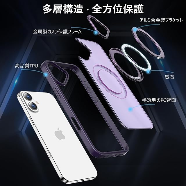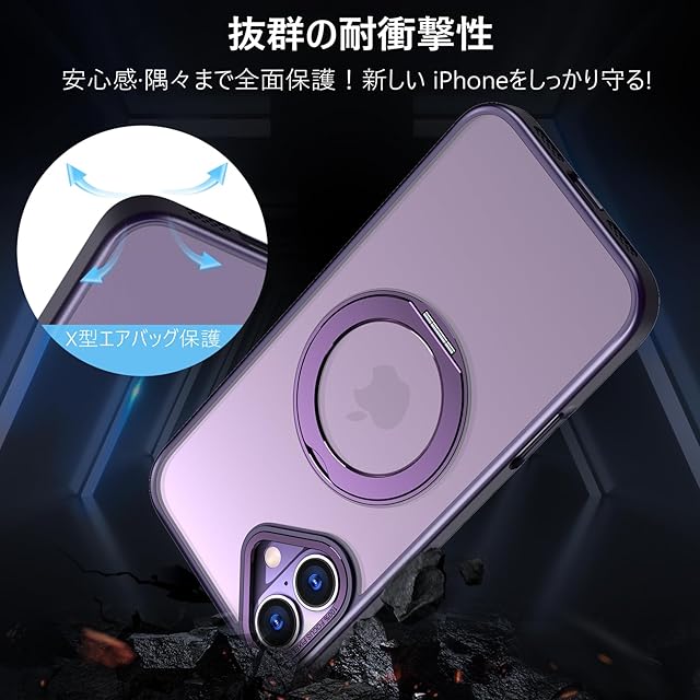 KWATUNG ケース iphone16用ケース magsafe対応 ワイヤレス充電 アイホン16用ケース 耐衝撃 iphone 16 用 ケース 360°回転スタンド 縦横両対応 スマホケース iphone 16 用 マグセーフ リング マグネット搭載 アイフォン16 用ケース 防指紋 米軍MIL規格 iphone16 用カバー 6.1インチ 半透明 マット感 深い紫 | TREND DESIGN 家電専門店