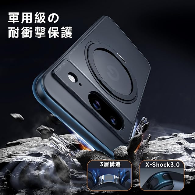 【米軍MIL規格準拠・高耐衝撃性能】米国国防総省の耐衝撃試験「MIL-STD-810G」に準拠し、耐衝撃性能が従来比20倍アップ!スマホの落下時に特に衝撃を受けやすい四隅には、衝撃を分散するクッション構造を採用。また、ケースの側面には柔軟性の高いTPU素材を使用し、耐衝撃性を強化。Google Pixel 8をしっかりと守ります。
