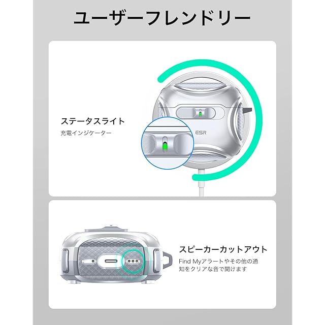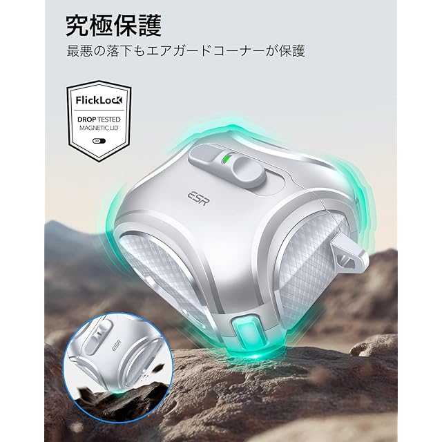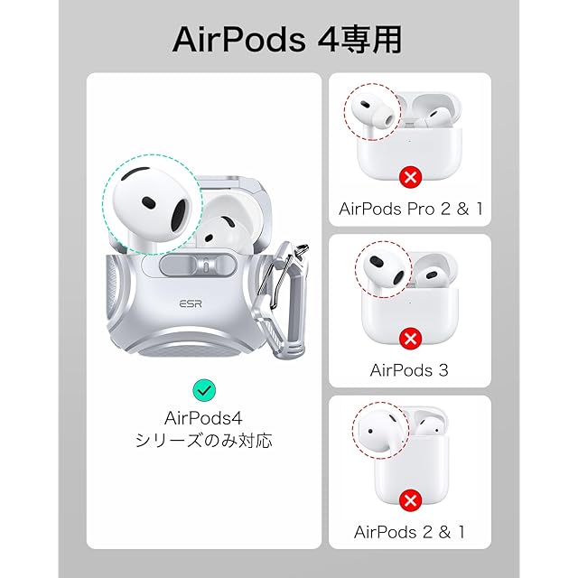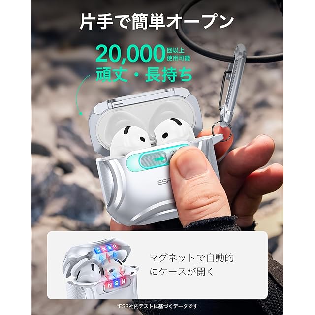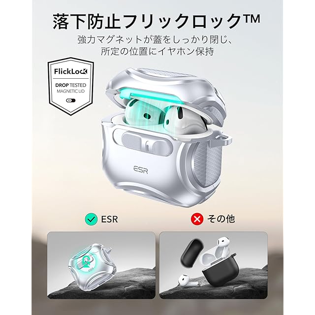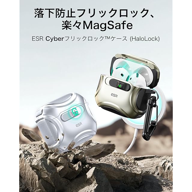 商品名:ESR AirPods 4 ケース(HaloLock) AirPods 第4世代 ケース(2024) (USB-C) 対応 MagSafe 対応 落下防止ロック イージーオープン Cyberシリーズ シルバー