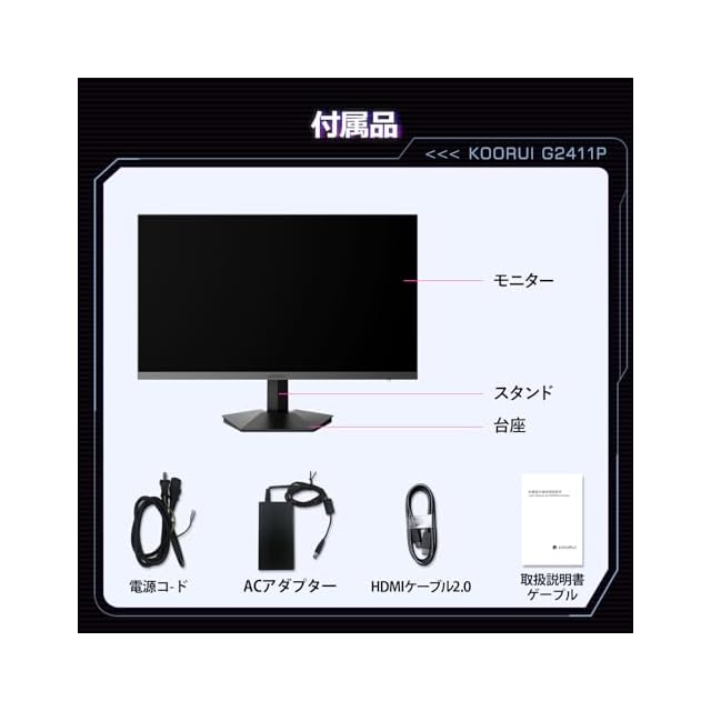 商品名:KOORUI ゲーミングモニター 24インチ 200Hz フルHD モニター IPSパネル 1ms (AdaptiveSync/HDMI×2/DisplayPort/VESA対応/ブルーライト軽減/HDR400),G2411P